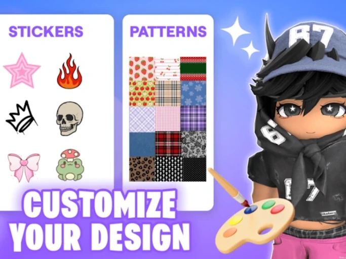 🎨 Choose from 80+ meshes (faces, jackets, dresses, and pets!), stickers and patterns to make your own ugc